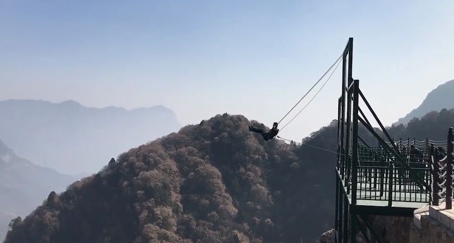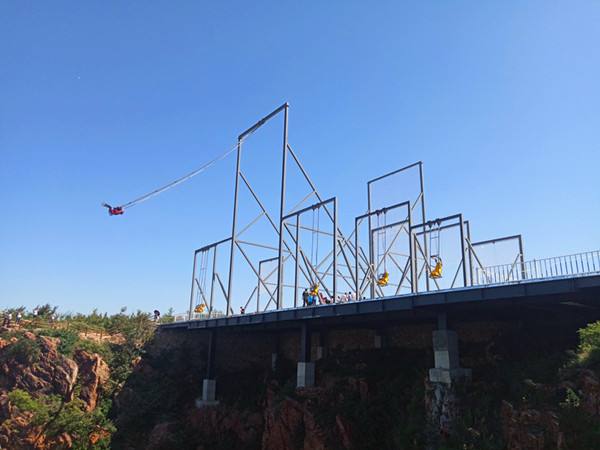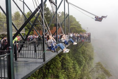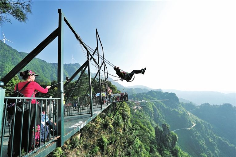 懸崖秋千是一種懸崖邊的極限刺激運動。秋千的座椅,被電吸鐵拉到懸崖內側于15米-25米高的地方,吸鐵忽然松開,長長的秋千瞬間向懸崖外蕩去,帶給人以刺激感覺。